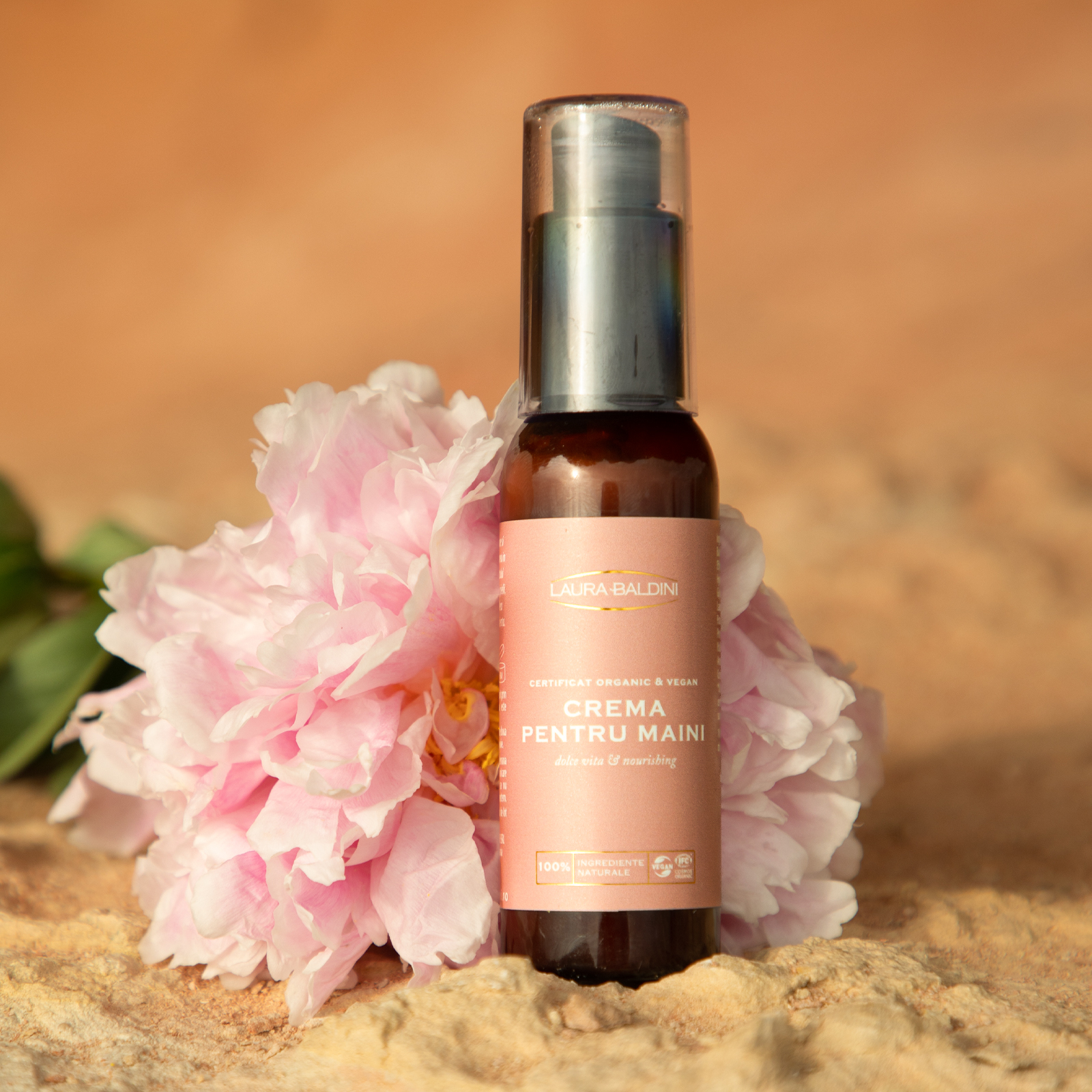 Crema intens nutritiva pentru maini Dolce Vita, cu aloe vera, acid hialuronic,unt de shea si ulei de masline , 50 ml. Certificata ORGANIC & VEGAN. Contine 100% ingrediente de origine naturala care ajuta sa fie absorbita rapid in piele si sa reduca aspectul liniilor fine. Formula imbogatita cu aloe vera, acid hialuronic,unt de shea si ulei de masline echilibreaza productia de sebum, intareste bariera pielii si lupta impotriva uscarii acesteia.